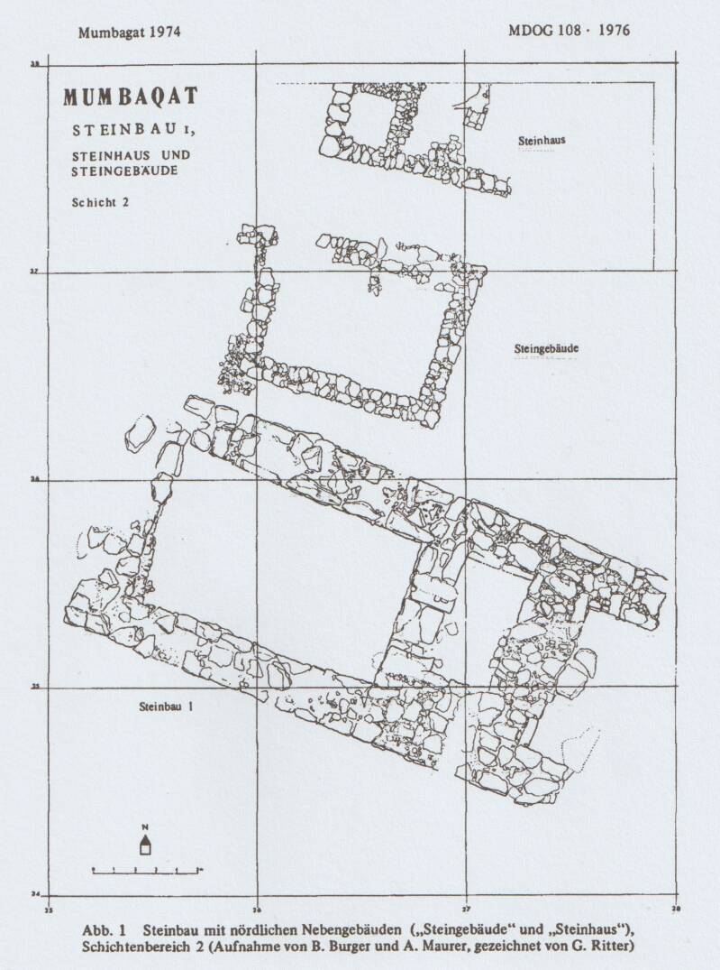 - ^ *W. Orthmann, Mumbaqat 1974. Vorläufiger Bericht über die von der Deutschen Orient-Gesellschaft mit Mitteln der Stiftung Volkswagenwerk unternommenen Ausgrabungen. MDOG 108, pp. 25–44, 1976