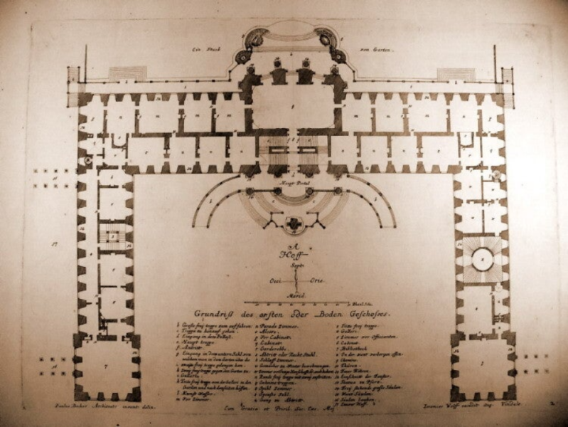 Würzburger Schloss-Residenz - M. von Welsch, Grundriss (aus: Württembergische Landesbibliothek Stuttgart, Sammlung Nicolai)