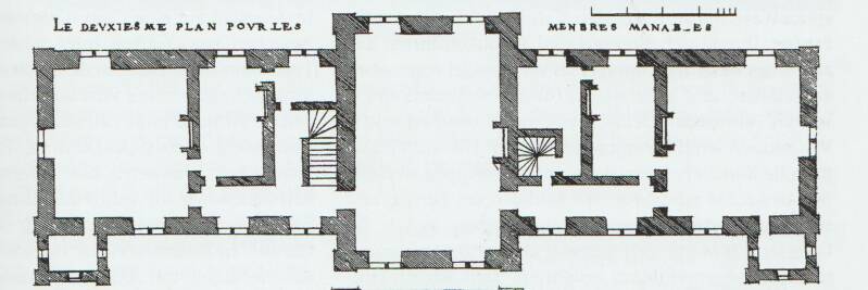 Landschloss Grundriss Deuxieme Etage, Entwurf Du Cerceau mit linken und rechten Treppenhaus